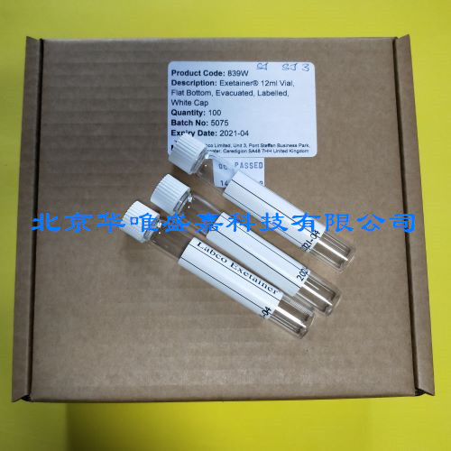 英国labco顶空进样瓶839W,平底12ml,已排空,带标签,白色瓶盖